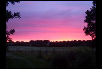 A notre arrivée nous avons bien sûr retrouvé les nuits blanches que nous avions laissées en Scandinavie en Juin. Depuis les nuits raccourcissent vite, à 23h on ne voit presque plus rien mais les couchers de soleil sont assez impressionnants. Un soir que je me lavais les dents en direction de l’ouest, j’ai aperçu la maison auréolée de rose. Sur le coup j’ai paniqué : est-ce qu’il y aurait le feu ? Et si ce n’est pas de la maison, ce serait derrière ? J’ai donc accouru dehors pour m’apercevoir que ce rose venait bien d’un feu, mais que celui-ci était en train de se coucher sur l’horizon. Un ciel de cette couleur, c’était magique. J’ai tenté de prendre une photo mais ce n’est pas très concluant comparé à ce qu’on pouvait réellement voir. Enfin ça vous donne une idée.