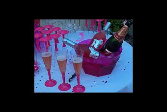 et des "aoûtiens", et surtout pour être sur le pont, dès le lendemain matin pour donner un coup de main à mes amis dans la préparation de la soirée.Virginie ayant décidé de faire un Pink Party, elle s'était lancée depuis la veille dans la décoration de sa terrasse en prenant soin du moindre détail. Le résultat était tout simplement époustouflant.