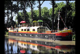 Villeneuve-lès-Béziers, devant le restaurant l'Écluse (16 avenue Pierre-Bérégovoy, 34 420 Villeneuve-lès-Béziers), a ouvert les portes de ses chambres d'hôtes. Cette péniche, construite en 1961