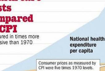 Le véritable problème du système de santé américain est l'augmentation des coûts (voir le graphique ci-bas). Mais alors que la technologie s'améliore, pourquoi est-ce que les coûts augmentent autant, contrairement à d'autres industries telles que l'informatique et l'électronique, qui voient les coûts chuter ? On pourrait aussi parler du LASIK, dont le prix a chuté de plus de 30% en 10 ans en même temps que la qualité a été grandement améliorée. Si les coûts étaient plus raisonnables, les 46 millions de non-assurés pourraient plus facilement avoir accès aux soins et/ou s'assurer.