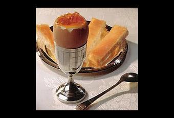 - Retirer les œufs ; les ouvrir et retirer le chapeau. Enlever un peu de blanc ; prendre des œufs de saumon sur la pointe d'un couteau et les verser délicatement dans l'œuf. Mélanger légèrement et donne un tour de moulin à poivre. Servir immédiatement.