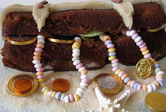 Après le gâteau Trotro il y a deux ans, le gâteau monstre l'an dernier, cette année, pour les 4 ans du chérubin, comme il est très branché trésor, j'ai fait simple mais efficace :