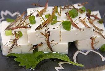 Le chef japonais Shoichi Uchiyama a créé des sushis aux insectes. C'est pour lui une alternative raisonnable à l'utilisation du poisson, notamment quant au goût et à l'apport de protéines; les insectes sont vus comme une ressource potentielle pour nourrir une population mondiale croissante. Bon, je suis fan de sushis et je sais bien que les poissons d'eau salée sont en voie de disparition, mais faudrait quand même me payer cher pour ingérer ce genre de choses. Je préfère encore manger des sushis végétariens et trouver mes protéines ailleurs, merci!