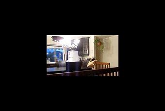 Un chaton s'élance pour sauter mais le rebord de la table cirée na va pas l'aider...