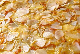 - Verser dans un moule à charnière ou un moule à manqué, beurré préalablement. Parsemer d'amandes effilées.