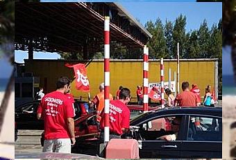 Une cinquantaine de militants CGT du Gard ont investi pacifiquement le péage de Gallargues le 30 juillet au beau milieu du chassé croisé entre juilletistes et aoûtiens, pour distribuer aux automobilistes plus de 4000 dépliants présentant les analyses et propositions de la CGT sur la réforme des retraites.
