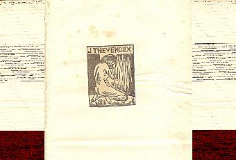 Les cinq exemplaires appartenaient à Jeanne Thevenoux, selon une inscription manuscrite portée sur chacune des pages de garde. En collationnant le n°178, intitulé « La Pierre d’Horeb », roman de Georges Duhamel illustré par Clément Serveau, je découvre avec intérêt et plaisir l’ajout d’un ex-libris.