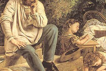 Proudhon par Courbet"La pauvreté vous chagrine; ce labeur de cheval aveugle attaché au manège vous fait mal à voir. Vous admettez la tragédie, les infortunes éclatantes, le malheur héroïque; mais vous demandez s'il est de la dignité de l'art de reproduire ces vulgaires souffrances./...Et voilà justement en quoi consiste votre erreur, l'erreur de toutes les écoles d'art depuis le commencement du monde: vous voulez s&parer ce qui est en soi inséparable de la lumière des ténèbres, l'esprit de la matière, la forme de la substance, la beauté de la laideur, le plaisir de la peine, l'art de la science et de l'industrie, l'idéal de la conscience, la jouissance du travail et de la maladie, la liberté de la servitude, la vie de la mort, la gloire de l'humiliation.Vous ne savez pas que la vie humaine se compose incessamment de l'union de vos contraires, mêlés à divers doses. Vous vous êtes fait un type des dieux et un type de l'homme, un type de l'aristocrate et un type de l'esclave; vous avez rêvé une existence de perfection et de béatitude, et une autre de damnation et de supplice; et vous avez dit ceci: Ceci est l'Idéal, le Paradis, l'Art ; et cela est la Réalité, la Barbarie, l'Enfer. Et vous avez ainsi proscrit les neuf dixièmes du genre humain, vous réservant l'idéal et les condamnant au travail. Nous rejetons vos catégories égoïstes; nous prétendons que l'art doit tout embrasser, à peine d'infamie pour lui et pour vous."Pierre-Joseph Proudhon-Du principe de l'art et de sa destination sociale-1865-