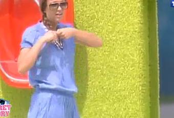 Il commence même par une petite boutade en envoyant un ballon dans la piscine afin de l’éclabousser.