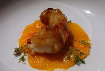Dans une grande poêle, j'ai versé une belle cuill à soupe de sirop d'agave, une belle cuill à soupe de sauce soja au yuzu, 15 g de beurre, et un peu de zeste de kumbawa. Puis j'ai laissé réduire jusqu'à ce que ce soit bien sirupeux. J'ai alors ajouté mes cigales et les ai faites cuire en les tournant régulièrement. Deux minutes suffisent. Il faut éviter à tout prix la sur-cuisson !