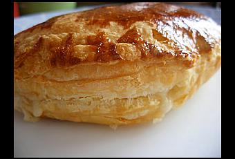 2) Etalez votre pâte feuilletée. Découpez 4 part (si vous utilisez un moule à chaussons, découpez des cercles avec le moule).
