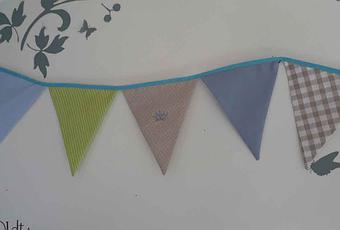 Comment j’ai fait une guirlande fanions pour un de mes garçons mais pas pour l’autre!!!! Ouf les vacances ont pu avoir raison de cette injustice! Voici ma seconde guirlande fanions. Au centre un appliqué strass couronne (qui a fait son effet!!!!!)
