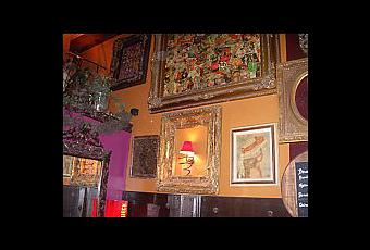 Les fans de déco vont se régaler. Ici le mot baroque prend tout son sens avec les grands lustres, les innombrables cadres aux belles moulures et surtout la quantité de tableaux qui courent sur les murs jusqu’au plafond. Parlons-en justement du plafond ! C’est en reprenant l’établissement que les propriétaires se sont rendus compte que le plafond était en fait un faux et que le vrai était à des mètres au-dessus. Levez la tête, la hauteur est impressionnante.