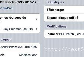 Autre avantage, les anciens modèles qui n'ont pas le droit a IOS4 (iphone 3 ou ancien Touch), mais qui ont quand même la faille, peuvent se protéger aussi. A condition d'être jailbreakés .
