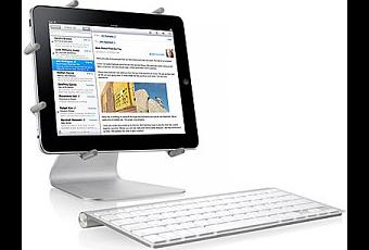 Si vous avez pris pour habitude d'utiliser votre iPad comme outil de travail, vous serez très certainement intéressé par cette solution de bureau qui transforme la tablette en tout petit iMac. Associé à un clavier bluetooth, on pourrait presque jouer au jeu des sept erreurs tant l'embase et le cadre autour de la tablette ressemblent à un écran Apple Display.
