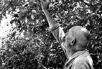 michel tabanou dérobant une prune du jardin de Chrstian Zervos - photo B. Lemaine 2010