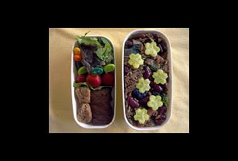 Hier, j'ai été à Disneyland! Je ne vous dis pas ça pour vous déprimer derrière votre bureau hein, mais pour expliquer mon titre. Ben oui, les bento y paraît que c'est interdit là-bas. Et toute autre forme de pic-nic. J'ai dit que j'étais sous un régime spécial sous ordre du médecin (mais c'est pas vrai! waou!) et on m'a laissée entrer avec mes boîtes. Niark, niark!
