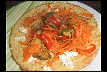 Pendant que ça mijotait, j’ai fait ma galette, puis j’ai mis des morceaux de carré frais, j’ai ajouté le contenu de mon wok, mes cornichons et j’ai mis par dessus un peu de carottes rapées!!