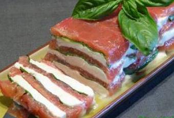 J’ai découvert cette présentation, il y a un an, lors d’un dîner de séminaire (j’ai toujours dit que nos grandes réunions avaient « du bon » ! ) … et je me suis promise d’attendre la saison idéale pour faire cette terrine aux couleurs de l’Italie, composée alternativement de tomates, mozzarella et basilic.