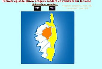 Alors que six adolescents (entre 11 et 18 ans ont été foudroyés hier soir en Haute-Corse sans gravité heureusement), la prudence sera encore de mise à partir d'aujourd'hui,et pendant 48h, puisque la Corse connaitra un temps très perturbé. Tout d'abord aujourd'hui vendredi, une dégradation pluvio-orageuse modérée concernera la façade Orientale, l'intérieur et le Centre. C'est sur ces deux dernières zones où les orages seront les plus marqués (d'où leur placement en alerte orange par notre rédaction). La façade Orientale connaîtra des pluies pouvant être orageuses surtout l'après-midi. Toutefois dès le matin, quelques coups de tonnerre sont possibles sur le Nord de l'île,sous les averses. Notre rédaction émet un premier bulletin spécial qui a prit effet ce matin à 5h, jusqu'à ce soir 18h .