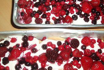 Dresser votre tiramisu (verres ou plat le déroulé et le même) imbiber les biscuits à la cuillère de nectar de fruits rouges, mettre une couche au fond de votre récipient, puis ajouter une couche de crème, une couche de fruits, et renouveler cette étape une ou deux fois, selon la capacité de votre récipient, finir par une couche de fruits.