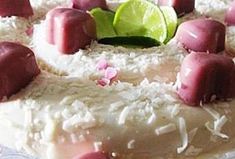 J'ai également décoré avec des tranches de citrons verts, des paillettes sucrées coeurs et des coeurs roses (recette des macarons japonais à venir)