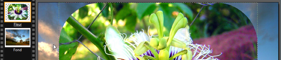 .. A cette étape, le "Calque 1" est sélectionné (encadrement jaune). Renommer ce calque "Fleur".. Redimensionner le calque à l'aide des poignées de redimensionnement puis positionner la fleur en haut à droite du paysage.