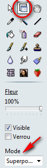 .. Dans le menu Mode de l'Outil gestionnaire de calques, choisir Superposition... Le travail étant terminé avec la fleur, cliquer sur Verrrou pour empêcher un déplacement accidentel de la fleur : un cadenas apparaît sur le calque.