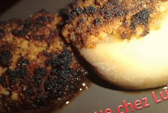 Et voilŕ un dessert trčs simple, trčs rapide mais trčs bon!!Pęches crumblelisées au pain d'épices - 2PP