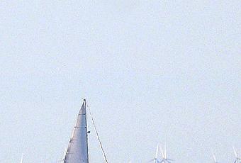 Photo prise au Cap des Caissie, près de Grande-Digue au Nouveau-Brunswick. Le parc éolien se situe à l’Île-du-Prince-Édouard, 40 km au Nord de l’autre côté du Détroit de Northumberland. Photo taken in Caissie Cape, near Grande-Digue in New Brunswick. The wind park is in Prince Edward Island, 40 km North, on the other side of the Northumberland Strait