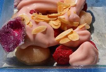 Espuma à la rose, pêche et framboise