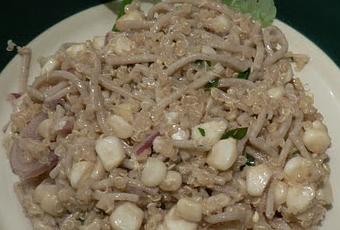 Je conseille de rincer les nouilles, et de bien faire refroidir le quinoa avant de mélanger.