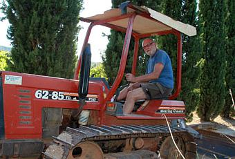 On pense que ce genre de tracteur à chenille date d’une autre époque, et le voilà outil de travail incontournable dans les vignes de Toscane. Selon, Gianni, le monsieur sur l’engin, “il y a plus de ce genre de tracteurs que ceux avec des roues, en Italie ! C’est très pratique et puissant ! Sauf pour les traitements en pulvérisation. Dans ce cas-là, on utilise l’autre tracteur.” Ah oui, c’est un autre plus loin, avec des pneus, tout vert de soufre !