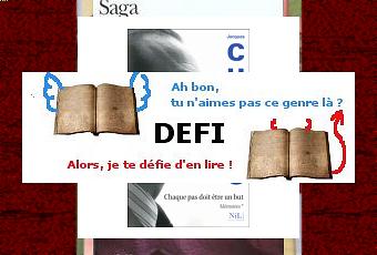 Le but est simple, confesser aux autres membres 2 genres littéraires que nous n'avons pas l'habitude de lire, soit parceque nous n'aimons pas ou sur lequel nous sommes réticents. Un membre vous défie donc de lire un livre dans chaque catégorie et se voit à son tour défier par un autre membre, etc. A l'heure qu'il est, nous sommes déjà plus de 25 participants et avons un zoli logo réalisé par (Bravo !)
