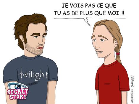 "Les mangas et les films sur le sujet m'inspirent. J'ai découvert la branche vampire chez les gothiques et ce côté théâtral m'a plu. J'aimerais bien jouer dans "Twilight", je m'identifie à la famille Volturi car ils ont la classe. Et j'ai des lentilles rouges, comme eux. Mais je suis surpris que Bastien ait trouvé mon secret aussi vite", confie le vampire.