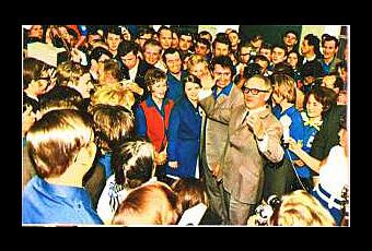 A l'aéroport, le public fort nombreux les a accueilli chaleureusement. Une délégation a ensuite eu le suprême honneur d'être conduite à l'Élysée.