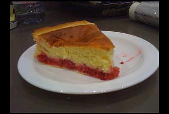 Alors, voici une tarte au fromage blanc et aux framboises :