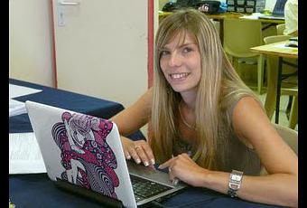 Ci-contre, Anémone Kulczak et son micro-ordinateur fashion.