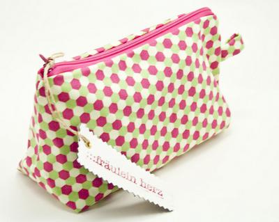 Trousse "hexagones multicolores" en coton, cousue main. Taille: 20 x 12 cm. Idéale pour ranger le maquillage et autres petites affaires.