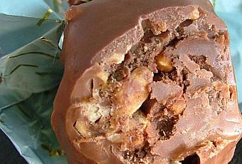 J'ai moulé mon "rocher glacé" dans un moule carré flexipan car il passe très bien au congélo et en plus pour le dessert d'un apèro dînatoire c'est idéal car on peut facilement découper des
