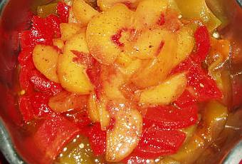 J'ai donc succombé à cette belle recette, elle est divine, un savoureux mélange entre le poivron et la pêche, j'ai juste réadapté la quantité, mais je ne regrette pas de l'avoir testé, au contraire, je pense que je la proposerai régulièrement à ma table.