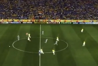 200 caméras holographique sur le vrai stade... Et retransmis, non pas sur de grands écrans dans les centaines de stades, mais directement sur chaque terrain... Incroyable ! Ci-dessous une image d'un match holographique qui se déroule ailleurs... Vous verrez ici des séquences de matchs holographiques..