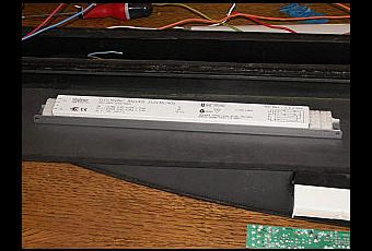 Remplacement du ballast electronique ( valeur avec frais de port 25 euros ). Il faut suivre les instructions de branchement inscrit sur la ballast ( ici nous avons du rajouter des fils ).