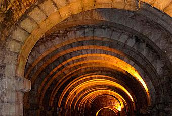 C'est là, dans de magnifiques galeries, sous des voûtes médiévales, que la pompe actionnée par une roue à augets continue de pomper l'eau qui s'est chargée de sel au
