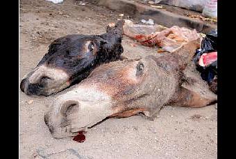 La nouvelle s'est répandue comme une traînée de poudre dans la paisible ville de Bordj Bou Arreridj. Des carcasses décharnées de deux têtes d'ânes ont été découvertes durant la matinée d'hier par des passants dans une ruelle coincée entre les quartiers populeux de Lagraph et d'El Koucha, non loin du marché de Bordj Bou Arreridj. Les deux crânes découverts sont reconnaissables et il n'y a aucun doute quant à leur appartenance à des équidés. Des centaines de citoyens ont afflué vers les lieux de cette découverte déplaisante qui laisse planer le doute sur une éventuelle commercialisation de viandes de baudets par des commerçants véreux dans les marchés de cette ville.............. source ; le quotidien d'Oran .