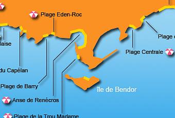 Bandol dipose d´un grand nombre de plages. Et d´autre part, aucune ne se ressemble. Il y en a pour tout les goûts. Nous reviendrons un jour sur les plages une par une (photos a l´appui !), mais le petit visuel ci-dessous, et très bien fait, de la part de plagemed.fr donne une bonne visibilité des plages disponibles.