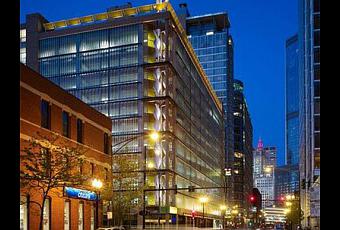 Le cabinet HOK Architects a achevé la livraison d’un parking de stationnement à Chicago, dont la particularité est d’intégrer des éoliennes à axe vertical sur l’angle sud-ouest de l’édifice.