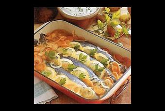 - Laver et sécher les harengs ; les mettre dans un plat allant au four.