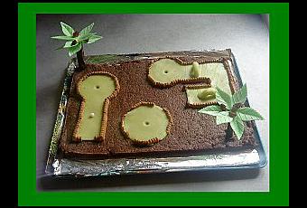 - le terrain de jeu est en pâte d'amande verte, les cercles découpés avec des verres, pour le reste place à vos souvenirs!!!!