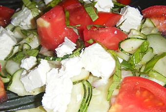 C'est une première chez moi les courgettes en salade ! Nous avons toujours eu l'habitude de les manger chaudes , en gratin , poêlées , farcies ... J'ai trouvé cette idée sur le blog de Sandra : Ok ce bon !